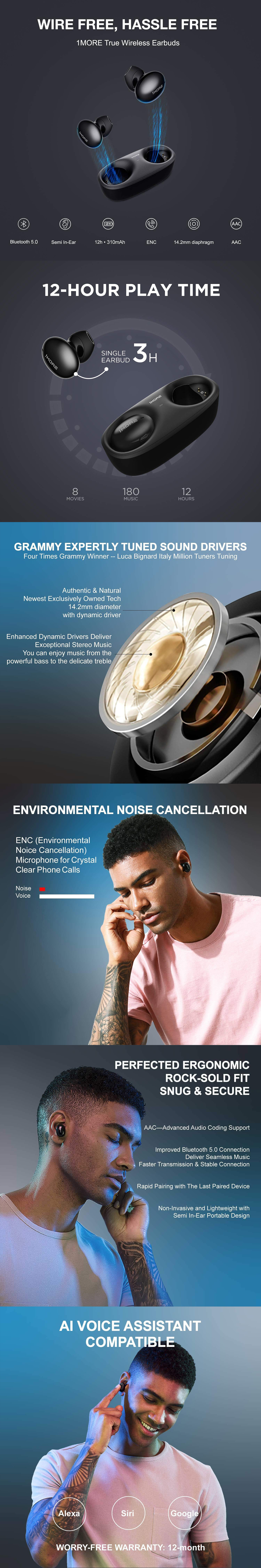 1MORE ECS3001B - TWS teljesen vezeték nélküli Earbud fülhallgató
