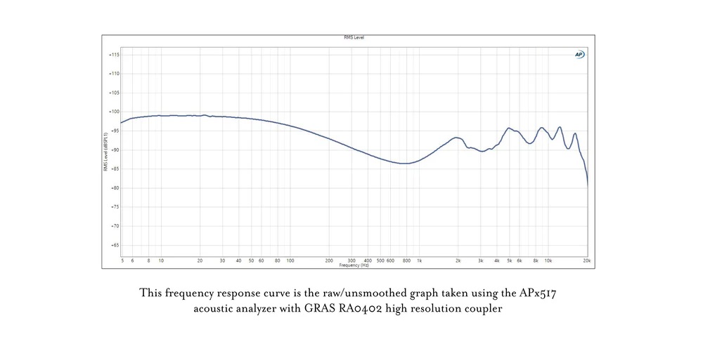 Gondosan hangolva A fenti görbe a frekvenciaspektrum minden egyes pontján megjeleníti a relatív hangerőszinteket, ami az Astrolith gondos egyensúlyát és finomhangolását tükrözi. Bár a frekvenciagörbék nagyszerű általános útmutatót jelentenek, nem képesek olyan technikai jellemzőket közvetíteni, mint a hangzáskép, képalkotás, rétegződés stb.