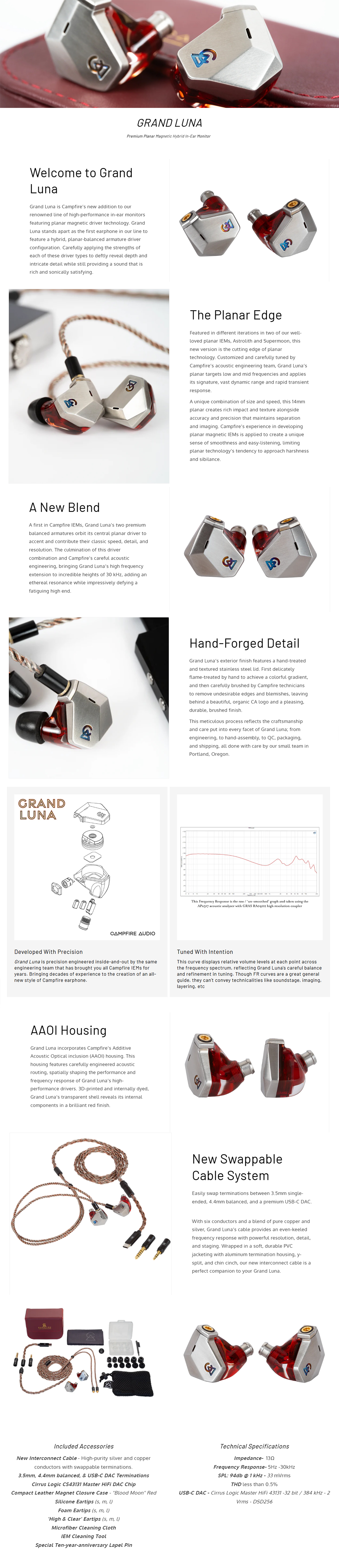 Ez a termék egy prémium kategóriás, planar-BA hibrid fülmonitor, amely új generációs 14 mm-es síkmágneses meghajtóval és két egyedi, balanced armature (BA) magassugárzóval biztosít kivételes tisztaságot és mélységet. A félig áttetsző, vörös színű ház, a kézzel csiszolt rozsdamentes acél fedlap és a lángkezelt, irizáló logó egyesíti a csúcskategóriás hangzást a kézműves dizájnnal. A cserélhető 3.5mm-es, 4.4mm-es és USB-C DAC csatlakozókkal ellátott kábelrendszer, valamint a prémium tartozékok tökéletes választássá teszik az audiofilek számára.