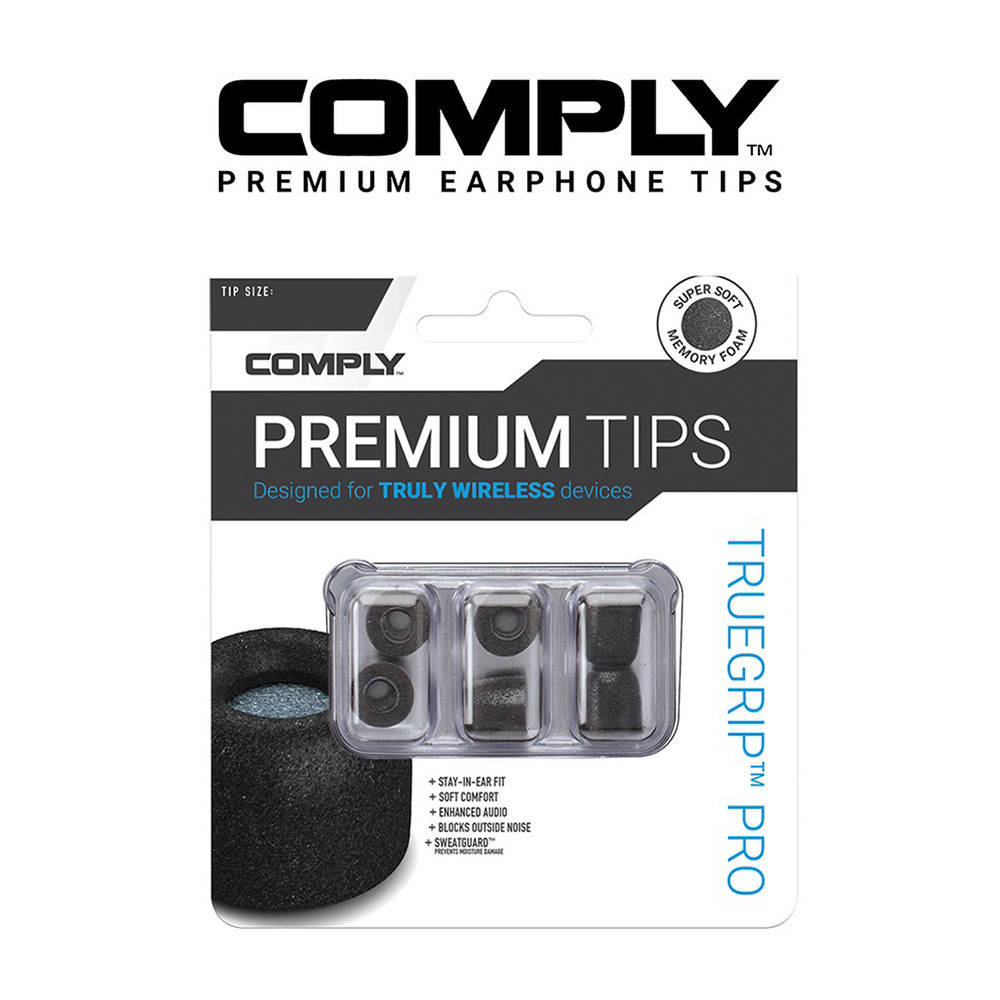 A Comply ™ TrueGrip ™ Pro prémium illesztékeket úgy tervezték, hogy illeszkedjenek bizonyos teljesen vezeték nélküli fülhallgató modellekhez. Egyedileg kúpos kivitelűek, amelyek pontosan lezárják a fülcsatornát, hogy kizárják a külső hangot a jobb hang és a hívás tisztasága érdekében, ezenkívül a TrueGrip ™ Pro illesztékek rövidebb kivitelűek, így tökéletes illeszkedést biztosítanak a töltőaljzatba. A Pro kivitelen található egy WaxGuard bevonat a külső szennyeződések ellen.