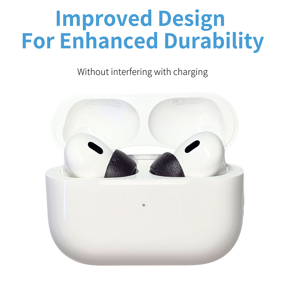 Továbbfejlesztett szabadalmaztatott összetételű memóriahab fülilleszték Apple AirPods fülhallgatókhoz. Használata megakadályozza a fülhallgató kiesését, jobb izolációt, és basszust kínál, valamint nagyobb kényelmet hosszabb viselet esetén. Az új anyagösszetétel tartósságban is túlmutat az elődmodellen. Kompatibilis Apple AirPods Gen 1&2 fülhallgatókkal.