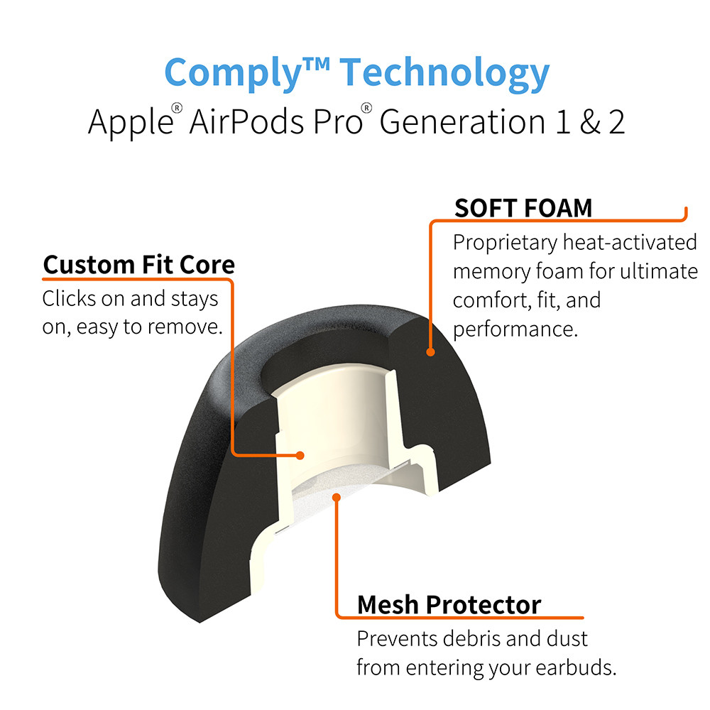 Továbbfejlesztett szabadalmaztatott összetételű memóriahab fülilleszték Apple AirPods fülhallgatókhoz. Használata megakadályozza a fülhallgató kiesését, jobb izolációt, és basszust kínál, valamint nagyobb kényelmet hosszabb viselet esetén. Az új anyagösszetétel tartósságban is túlmutat az elődmodellen. Kompatibilis Apple AirPods Gen 1&2 fülhallgatókkal.