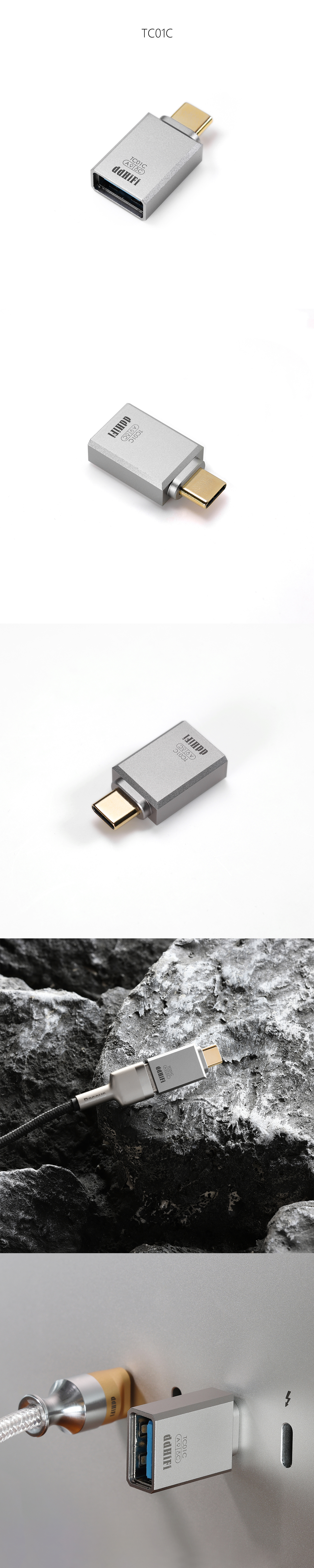 A nagy adatátviteli sebességre képes HiFi minőségű TC01C USB 3.1 adapter ezüst színű AL6063 alumínium ötvözetű házzal és aranyozott csatlakozókkal épült.