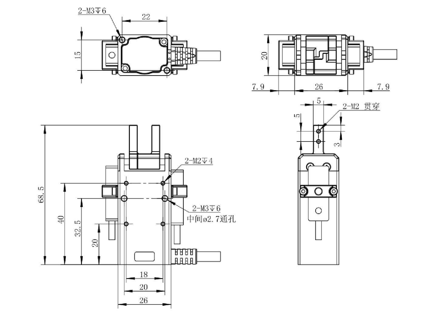 | 2x Hetszögletű csavar (M3x8) | 6x Hatszögletű csavar (M2x6) |