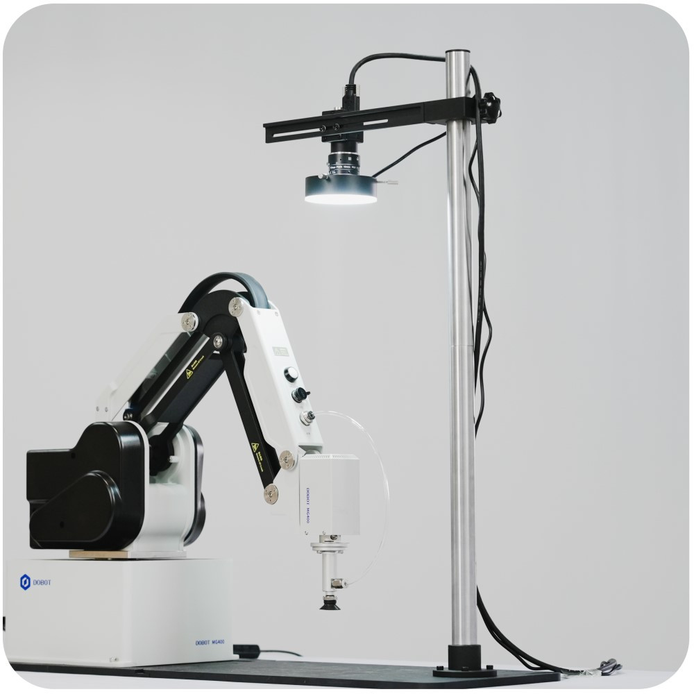 A DOBOT Robot Vision Kit egy alapvető szoftver- és hardverplatformot biztosít a vizuális fejlesztés alapján. Segítségével az MG400-as (PRO) robotkar képes felismerni a különböző méretű és formájú tárgyakat, ami hatékony megoldássá teszi őket robotizált, automatizált feladatok, mint csomagolás, a pick-and-place, az összeszerelés és a gépkezelési alkalmazások számára, akár a szakképzésben, informatikai, robotikai oktatásban, vagy az iparban is. Nélkülözhetetlen extra tartozéka az MG400-as robotkar családnak.