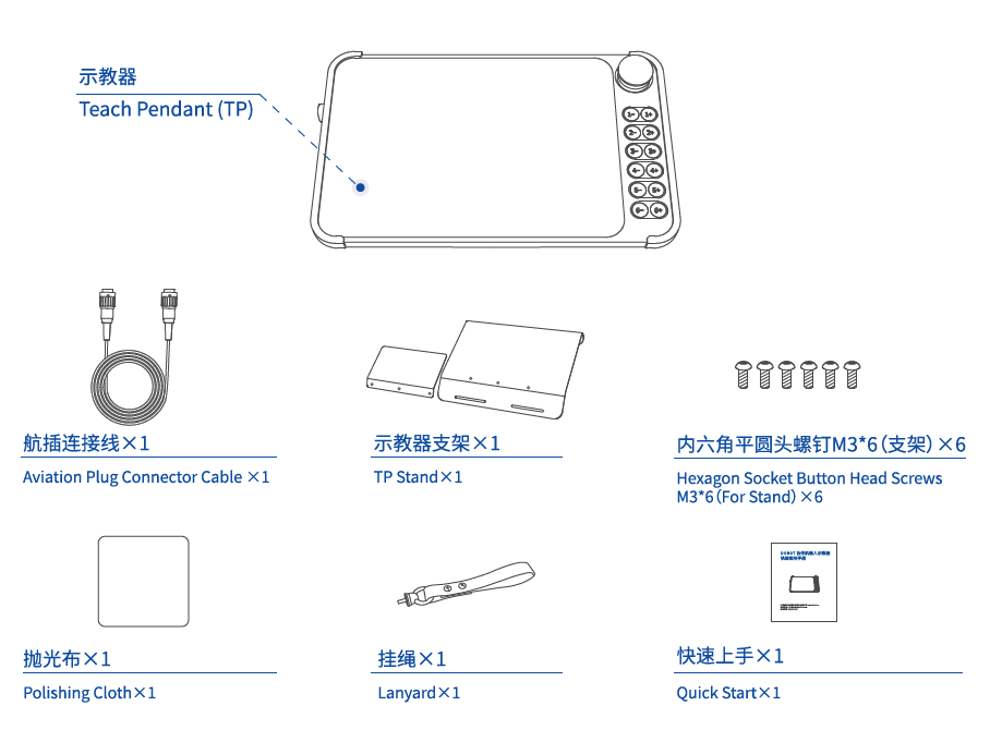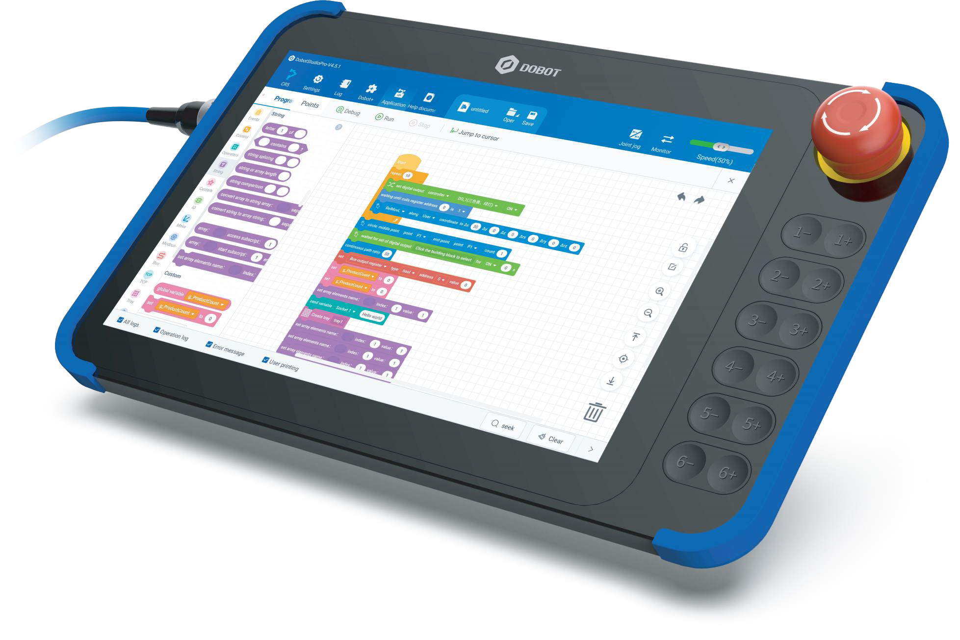Egy vezetékes hordozható konzolként működik, melynek segítségével nincs szükség egy asztal előtt ülve elvégezni a robot programozásának folyamatait. 10 colos LCD érintőképernyője segítségével könnyen kezelhető és felhasználóbarát programozási eszköz. A kiegészítő kizárólag a Dobot CR szériás kollaboratív robotkarjaival kompatibilis.
