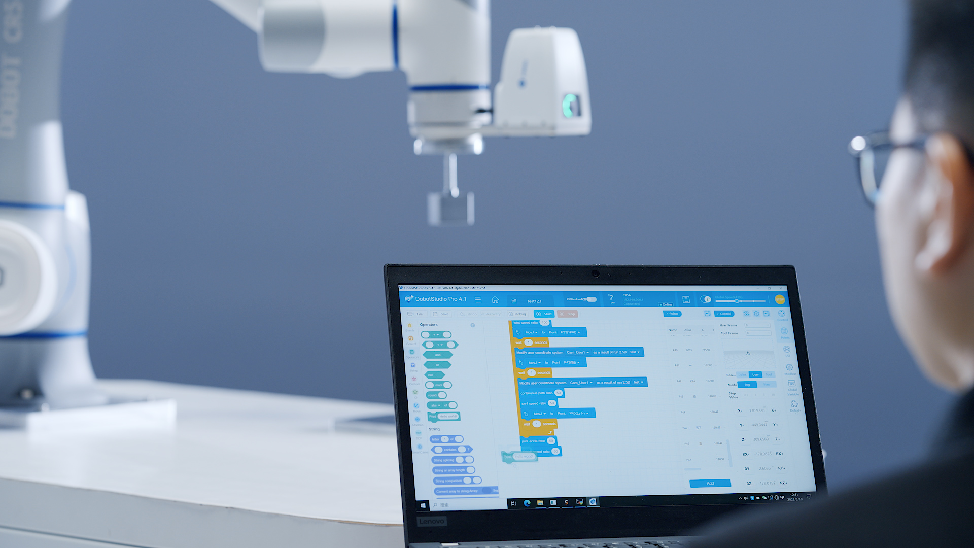 A felhasználóbarát grafikus programozási felület lehetővé teszi több funkció könnyed kombinálását, lehetővé téve a kollaboratív robot és a látórendszer kettős vezérlését kódolási szakértelem nélkül.