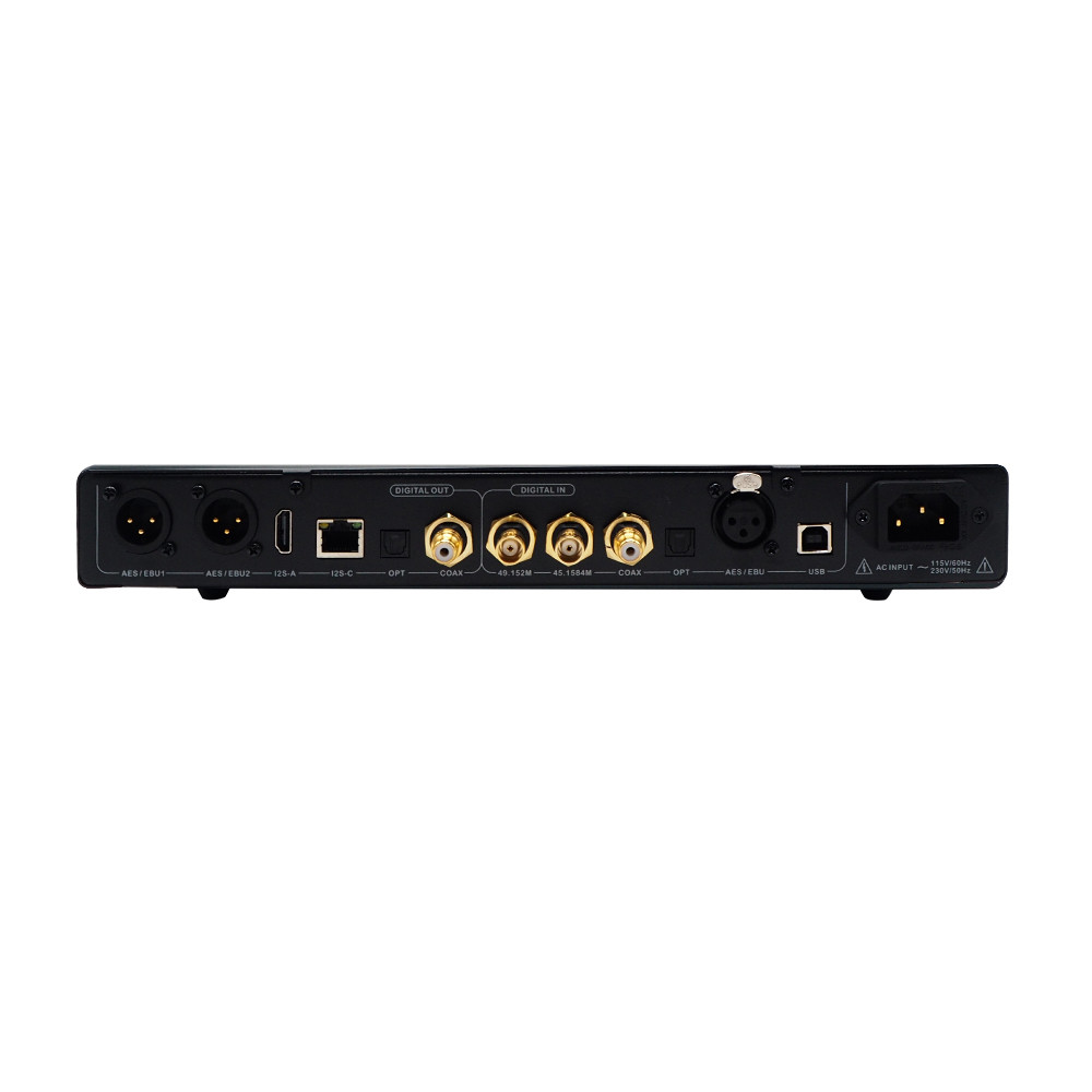 Sokoldalú csatlakoztathatóság: USB, koaxiális, optikai és AES bemeneteket fogad, és támogatja az SPDIF koaxiális, optikai, AES és i2s kimeneteket.