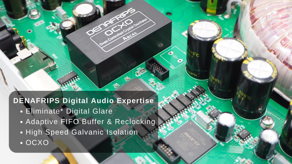 - Haladó digitális feldolgozás: Az FPGA chip, amely a Denafrips digitális jelprocesszálásban szerzett széleskörű szakértelmének tanúbizonysága, FIFO pufferezést és újraórázást tartalmaz, mindet az OCXO által szinkronizált, rendkívüli időzítési pontossággal.