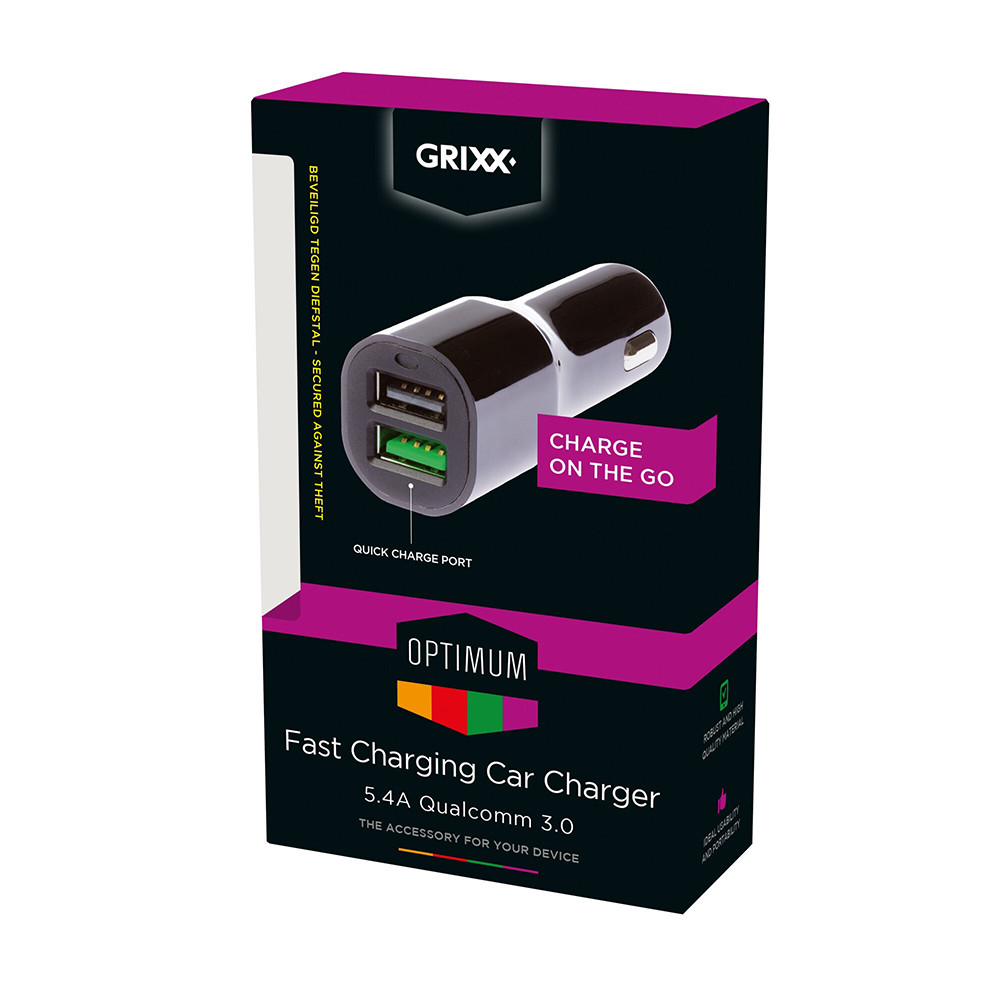 GRIXX OPTIMUM CAR CHARGER - Autós Gyorstöltő 2x USB 5.4A Qualcomm 3.0