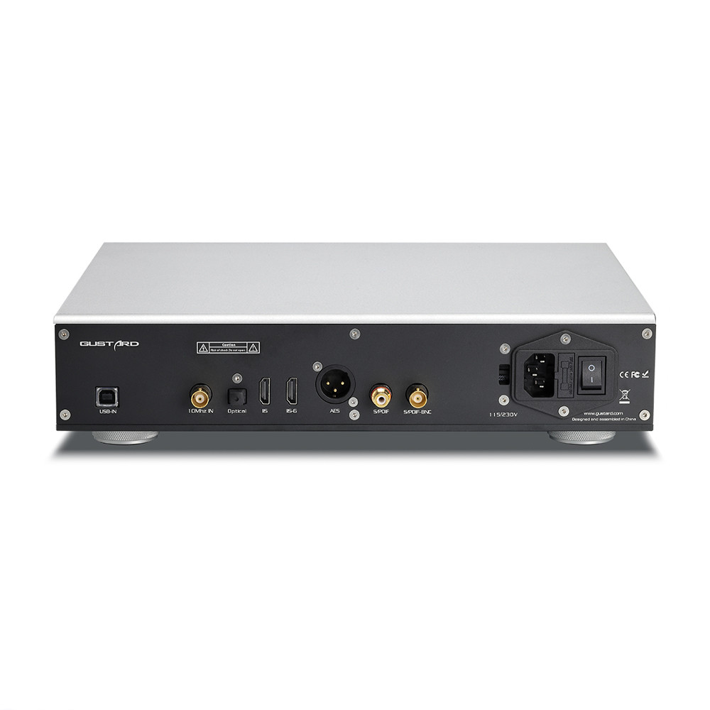 A Gustard U26 USB Digital Interface egy audiofil-grade DDC (Digital to Digital Converter) eszköz, amely professzionálisan optimalizált USB audio megoldásként funkcionál high-end hangrendszerekhez. Az eszköz az Amanero Technologies hardverét és a Gustard szabadalmaztatott szoftverjét egyesítve, DSD2048 és PCM1536kHz natív támogatással rendelkezik. Az U26 a teljesen elkülönített USB energiaellátás-menedzsment rendszerrel, az OCXO és K2 ultra-alacsony zaj clock szintézissel, valamint a 200Mbps fizikai elkülönítési chipjével biztosítja a tiszta és zajmentes audiojel-továbbítást. A készülék opcionálisan külső 10MHz referencia órával szinkronizálható, és teljes háttér-latenancia vezérlésű ASIO drivereket tartalmaz az audiofil hallgatók számára.