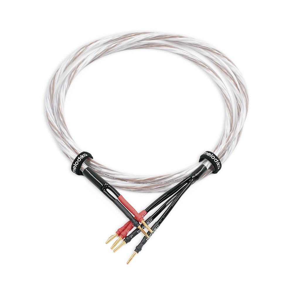 A Melodika BSBW225 Brown Sugar bi‑wiring hangszórókábel 6N OFC réz Spiral Litz vezetőkkel és négy azonos keresztmetszetű érrel (4x2,25 mm²) biztosít tiszta, dinamikus jelátvitelt. A háromrétegű LDPE szigetelés alacsony kapacitást és kiváló részletmegőrzést nyújt. A Solid Grip aranyozott banándugók nagy vezetőképességű, tartós csatlakozást garantálnak, prémium hangzást kínálva igényes bi‑wiring rendszerekhez.