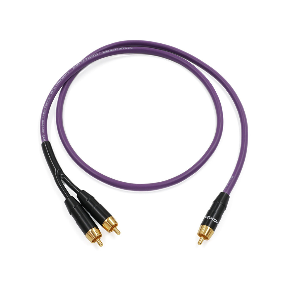 Melodika MDSWY Y‑típusú subwoofer kábel 4N OFC réz vezetővel és 23 AWG érátmérővel. Dupla árnyékolása és aranyozott RCA csatlakozói tiszta, zajmentes mélyhang‑átvitelt biztosítanak. Az Y‑kialakítás lehetővé teszi, hogy a subwoofer két bemenetét egyszerre hajtsa meg, ami sok modellnél erősebb jelszintet, nagyobb érzékenységet és feszesebb, határozottabb basszust eredményez, különösen alacsony hangerőn.