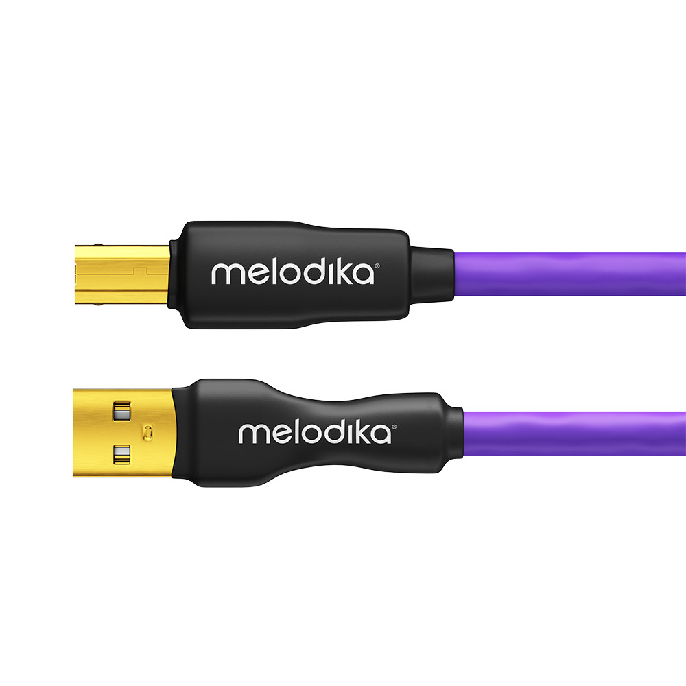 Melodika MDUAB prémium USB 2.0 A-B kábel, 4N tisztaságú OFC réz vezetőkkel és 4x0,2 mm² érátmérővel. A háromrétegű árnyékolás és a PE/PVC szigetelés stabil, zajmentes adatátvitelt biztosít, míg a 24K aranyozott csatlakozók javítják a kontaktust és csökkentik a jelveszteséget. Ideális DAC‑okhoz, audio interfészekhez és igényes digitális rendszerekhez.
