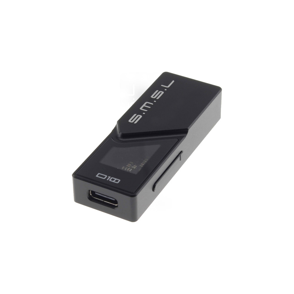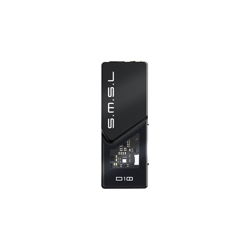 Nagy teljesítményű hordozható fejhallgató erősítő és DAC, két darab Cirrus Logic CS43131 DAC chippel. Támogatja az akár 32bit 384kHz-es PCM és a DSD256-os mintavételi sebességeket. Ezek a chipek jelentős fejhallgató-erősítést is biztosítanak, akár 500 mW kimeneti teljesítménnyel 32 ohm-on, 121 dB dinamikatartománnyal. Ami a D10 csatlakozási lehetőségeit illeti, bemenetként egy USB-C csatlakozót találunk, kimenetként pedig két típusú fejhallgató csatlakozót: egy 3.5 mm-es jack és egy szimmetrikus 4.4 mm-es jack csatlakozót. A megfizethetőség ellenére az SMSL minimalista, csúcskategóriás dizájnt adott a D10-nek, transzparens fedéllel amivel betekintést nyerünk a felhasznált áramkörökbe.