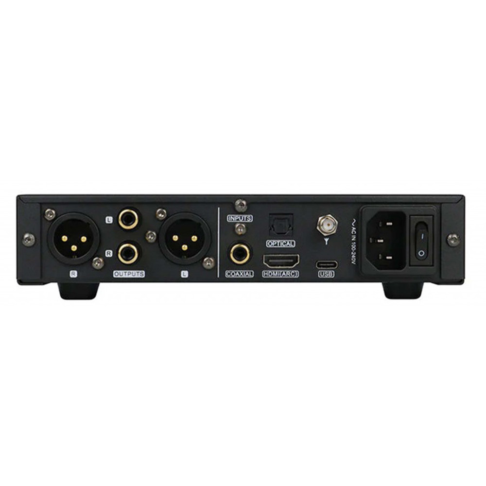 Az egyvégű RCA és szimmetrikus XLR kimenetek mellett HDMI ARC, COAX, optikai, Bluetooth és USB-C bemenetek is fellelhetők. Az előlapon található edzett üveggel védett színes IPS kijelző könnyen olvasható és szabadon kikapcsolható. A váltható USB1.1 és USB2.0 módokkal Sony PlayStation PS4/PS5 és Nintendo Switch felhasználók is ki tudják használni az eszköz nyújtotta lehetőségeket.