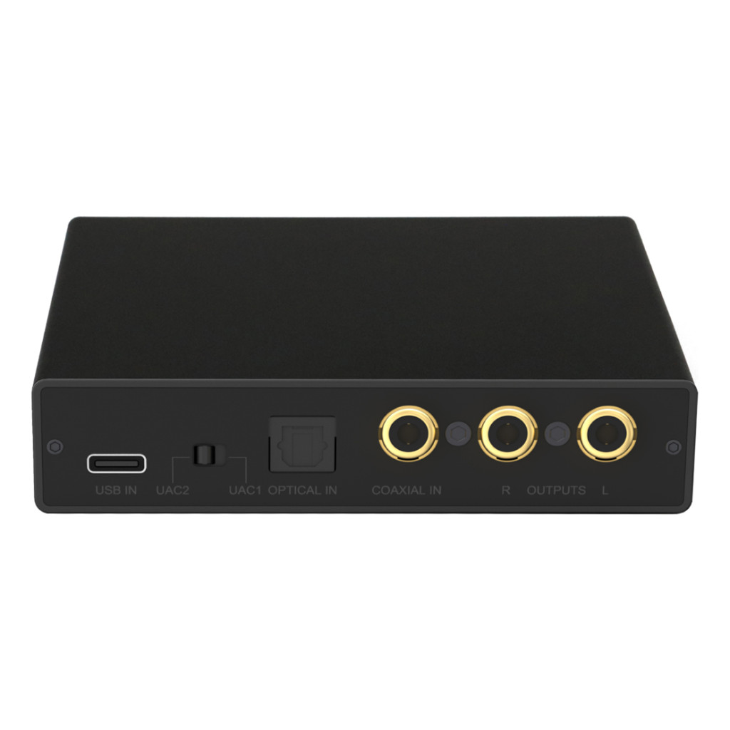 A központi ESS ES9039Q2M DAC chip alacsony torzítással, széles dinamikatartománnyal és precíz jelvisszaadással működik. Több bemenetet kínál: USB Type-C, optikai és koaxiális. A kimeneti szint 2 Vrms, THD+N