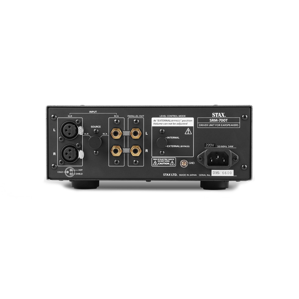 A STAX SRM-700T elektrosztatikus fejhallgató-erősítő egy csúcskategóriás hibrid meghajtó egység, amely ötvözi a FET bemenet és a vákuumcső kimenet előnyeit. A vákuumcső rendszer második szakaszában a híres 6SN7 GT csövet alkalmazza, amely erőteljes és tiszta teljesítményt biztosít. Az első szakaszban egy egyedi gyártású, alacsony zajszintű kettős FET-et használnak, amely javítja az általános hangminőséget.