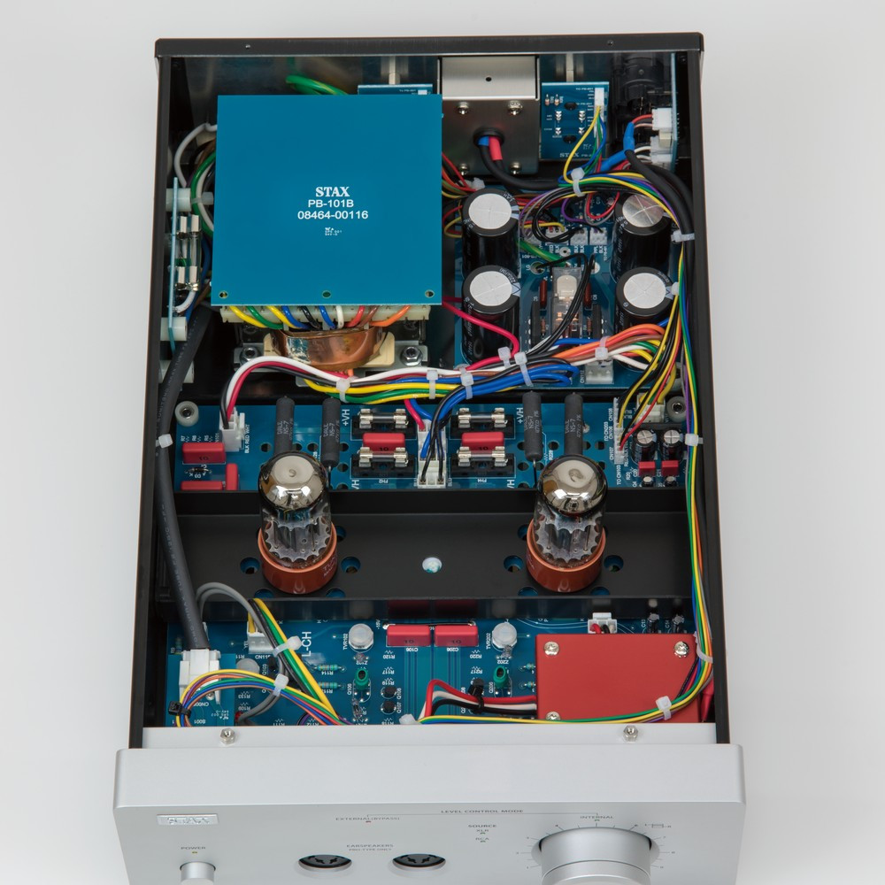A gyártó nem javasolja más elektrosztatikus fejhallgatók használatát a STAX erősítőkkel. Ezek a fejhallgató erősítők fekete és ezüst színben készültek.