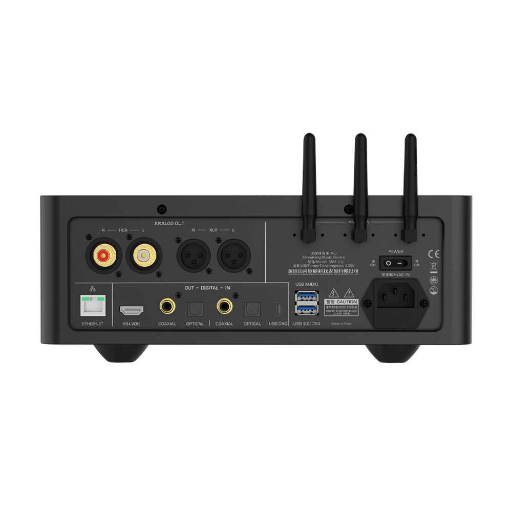 A készülék megőrzi a rendkívül sokoldalú csatlakoztathatóságot: Bluetooth 5 LDAC/aptX HD támogatással, WiFi 6 (2.4G/5G) hálózati streaminggel, NAS/DLNA/AirPlay kompatibilitással és az Eddict Player alkalmazással távoli vezérléssel. Digitális és analóg ki‑ és bemenetek széles választéka áll rendelkezésre, köztük optikai, koaxiális, USB, I2S HDMI, RCA, XLR és 6.35 mm fejhallgató kimenet. Az SM1.3R közvetlenül párosítható végfokokkal vagy aktív hangfalakkal is, így egyszerűen építhető belőle magas minőségű kétcsatornás rendszer.