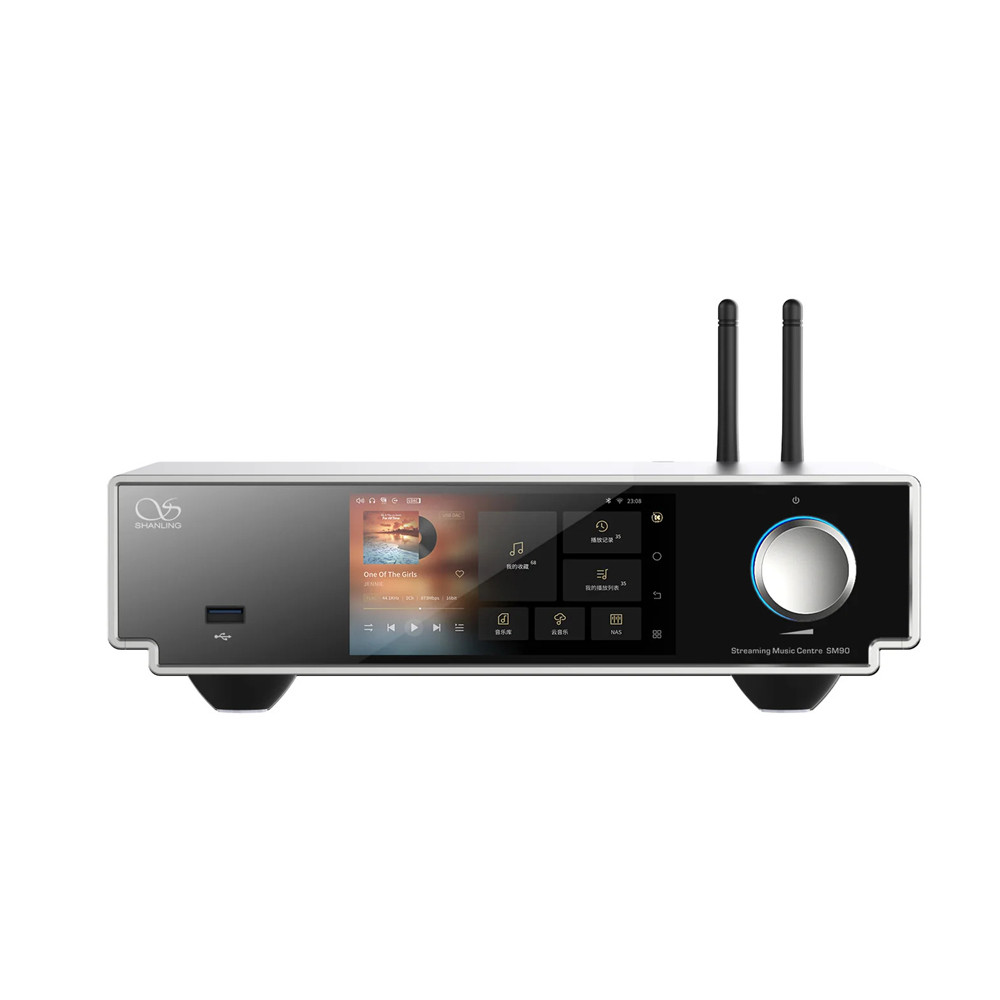 A Shanling SM90 a Shanling Android alapú streaming platformjának legújabb generációját hozza el a kompakt "90"-es sorozatba, a zászlóshajó SM1.3 kiforrott rendszerével, de elérhetőbb áron. Két AKM AK4493S DAC‑ja a Shanlingre jellemző sima, természetes hangzást nyújt, az AGLO bit‑perfect rendszer pedig akár 32‑bit/768 kHz PCM és DSD512 lejátszást biztosít. Az SM90 az első Shanling streamer HDMI ARC támogatással, így könnyedén illeszkedik modern nappali rendszerekbe.