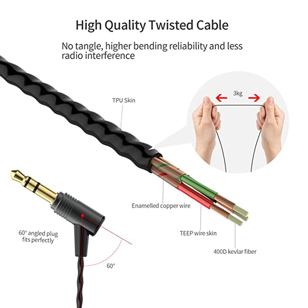 A Twisted Core kábelköteg csavart huzalból készül, a magot a 400D Huang Das selyemből készítik, amely jó húzóerőt és hatékony védelmet nyújt a vezetéknek a fejhallgató élettartamának meghosszabbítása érdekében.