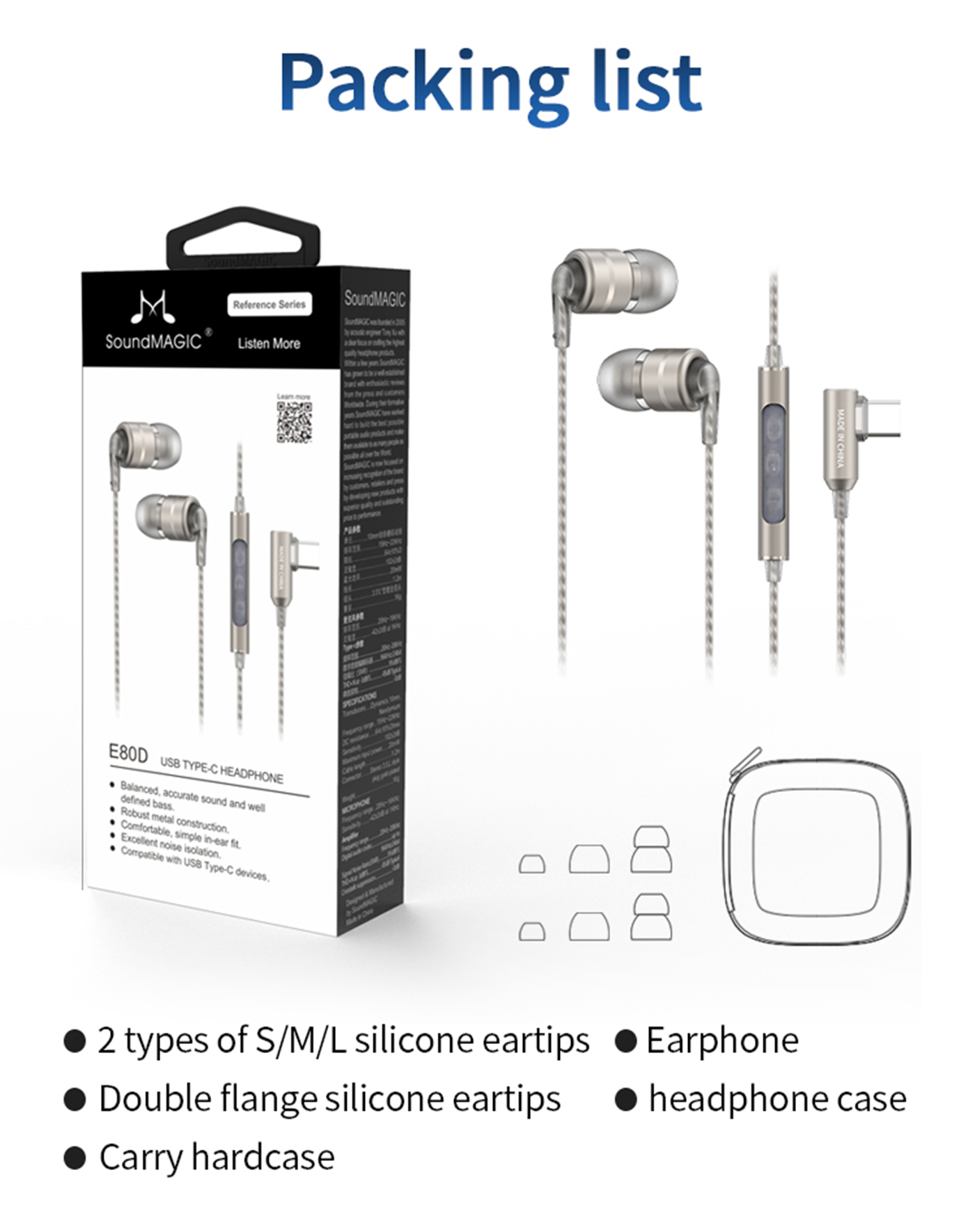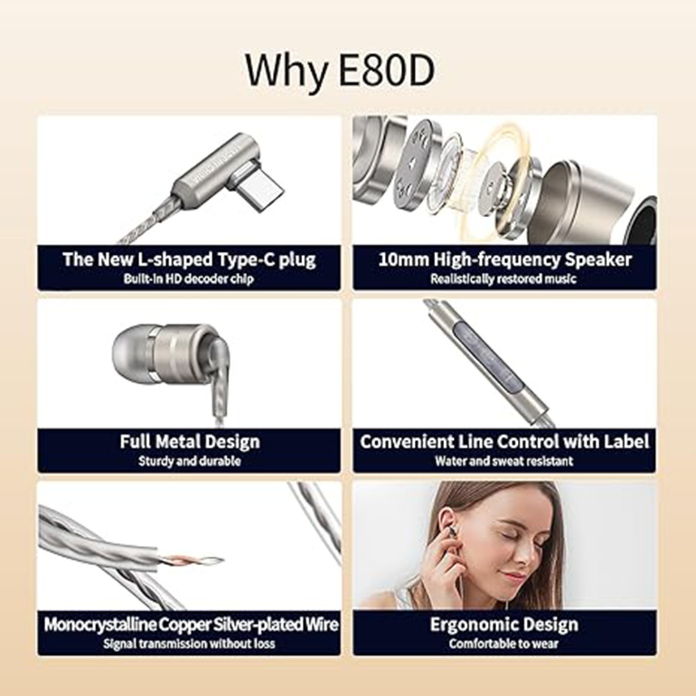 Az E80D egy magával ragadó és kényelmes fülhallgató, ami igényes zenehallgatóknak nyújt egy egyszerű és modern zenehallgatási megoldást a hétköznapokra. A csomag tartalmaz továbbá egy tokot és tartalék fülillesztékeket.