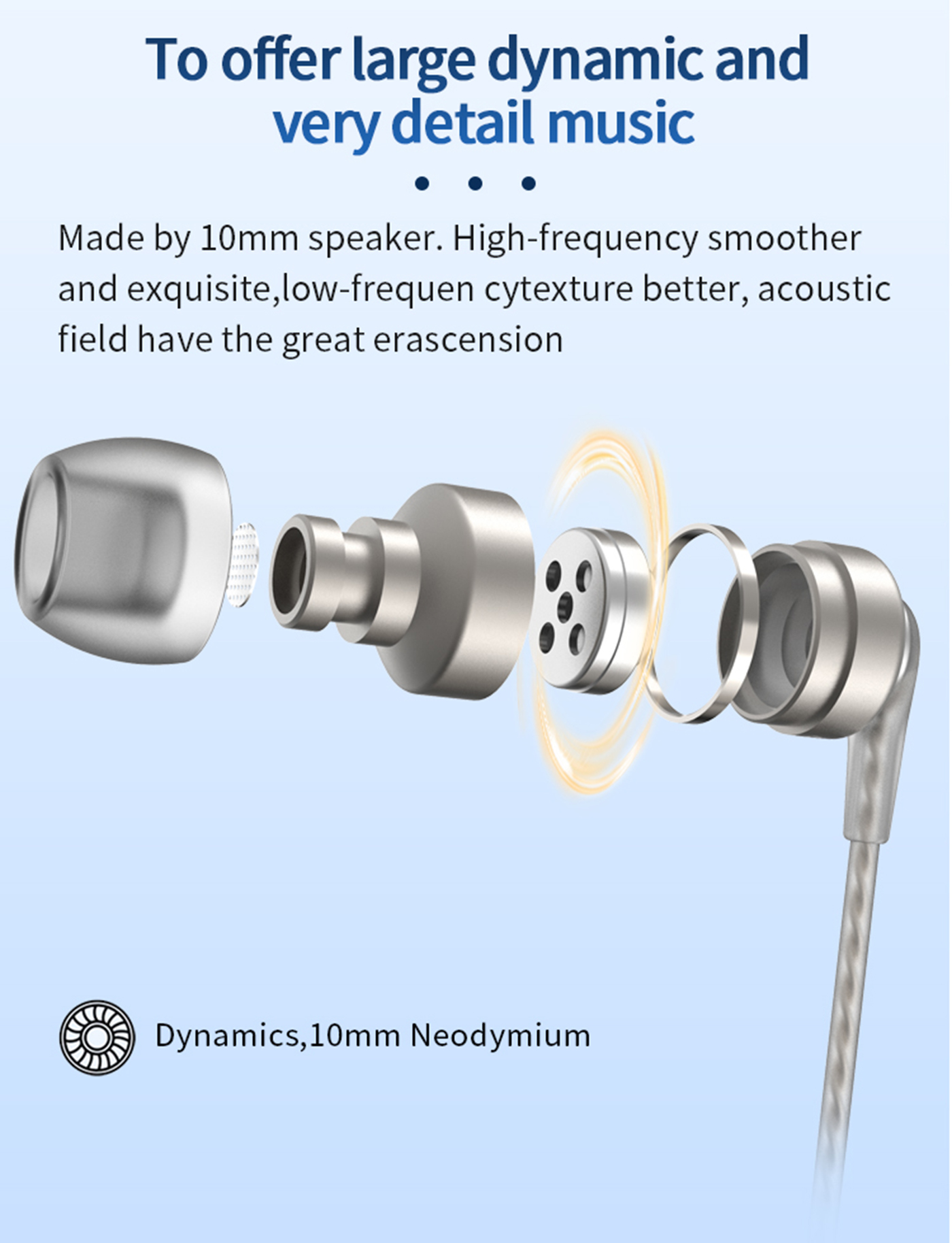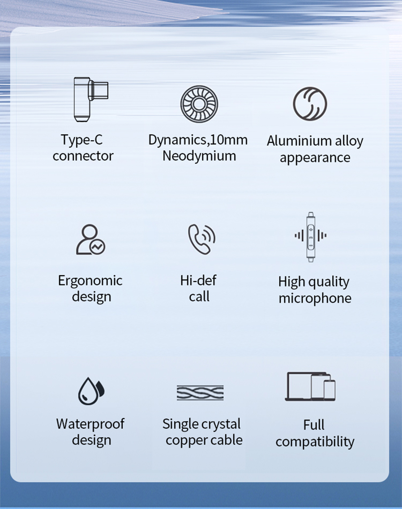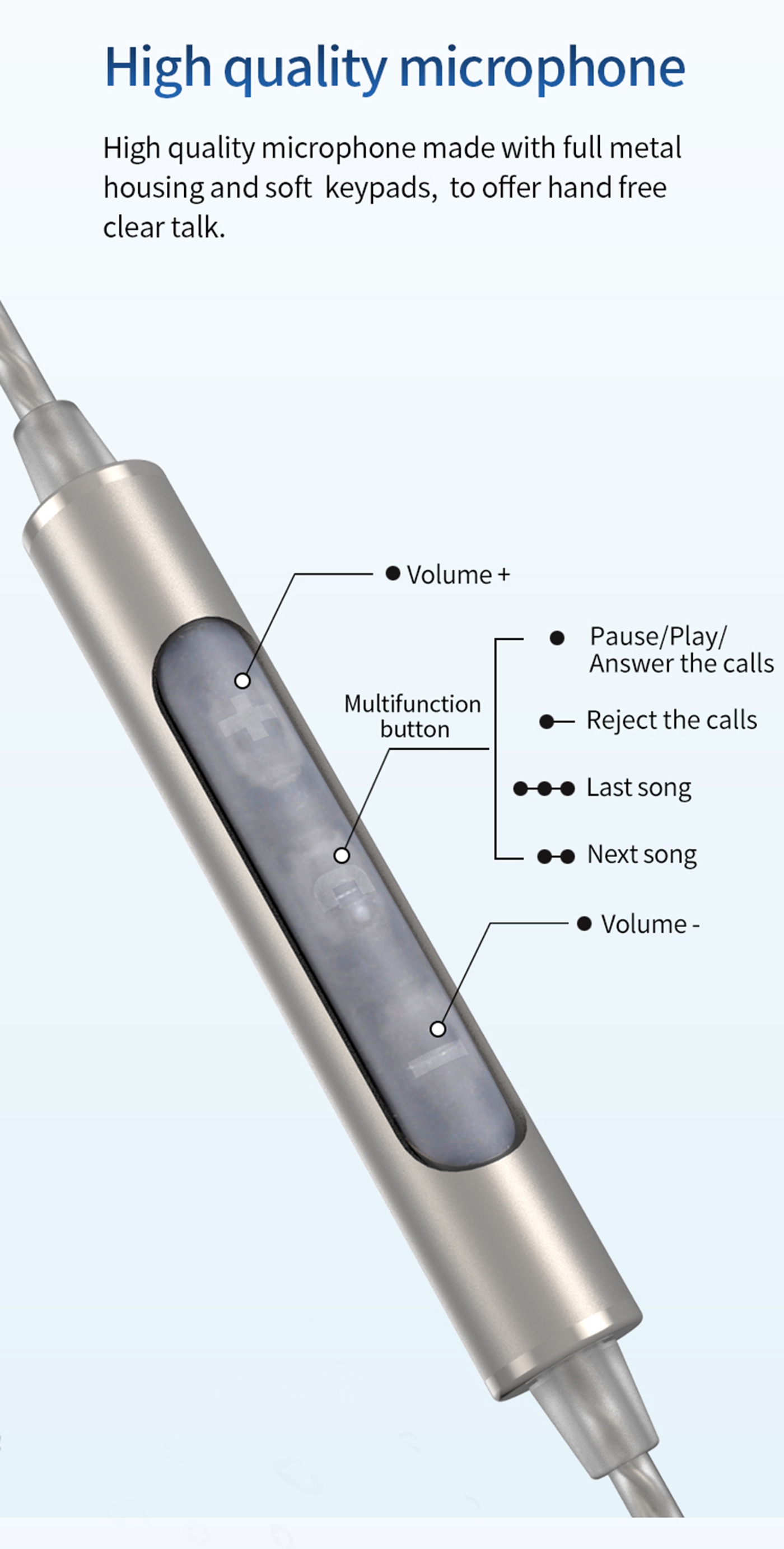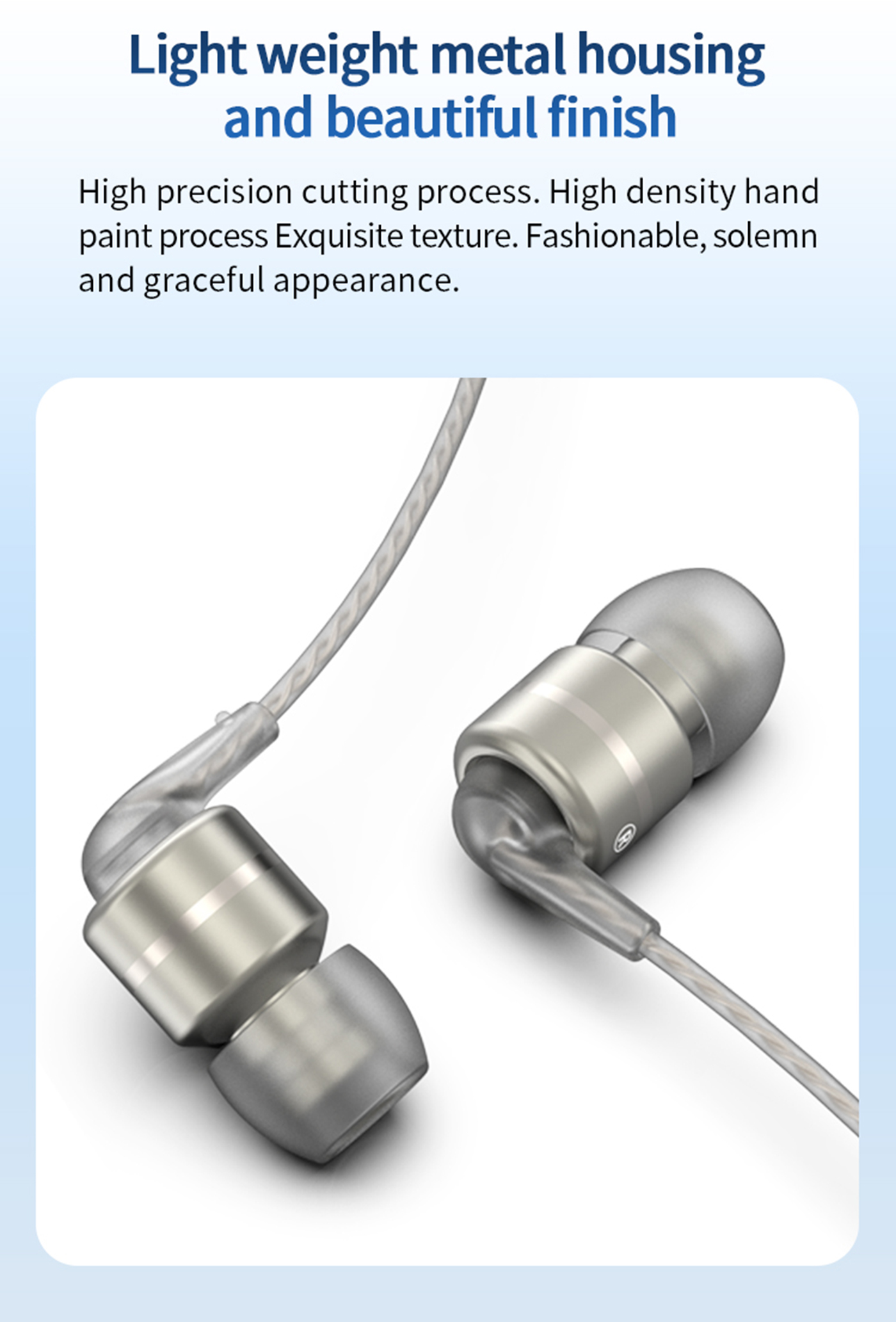 Az elegáns megjelenés prémium, tiszta és kellően mély hangzással párosul. A cseppálló kialakítású alumínium ház egy 10mm-es dinamikus, neodímium mágneses meghajtót tartalmaz, ami gondoskodik a részletes és tiszta hangzásért. A fülhallgató monokristályos réz kábelén egy három gombos kapcsoló és mikrofon található az egyszerű vezérlésért és hívásokért.