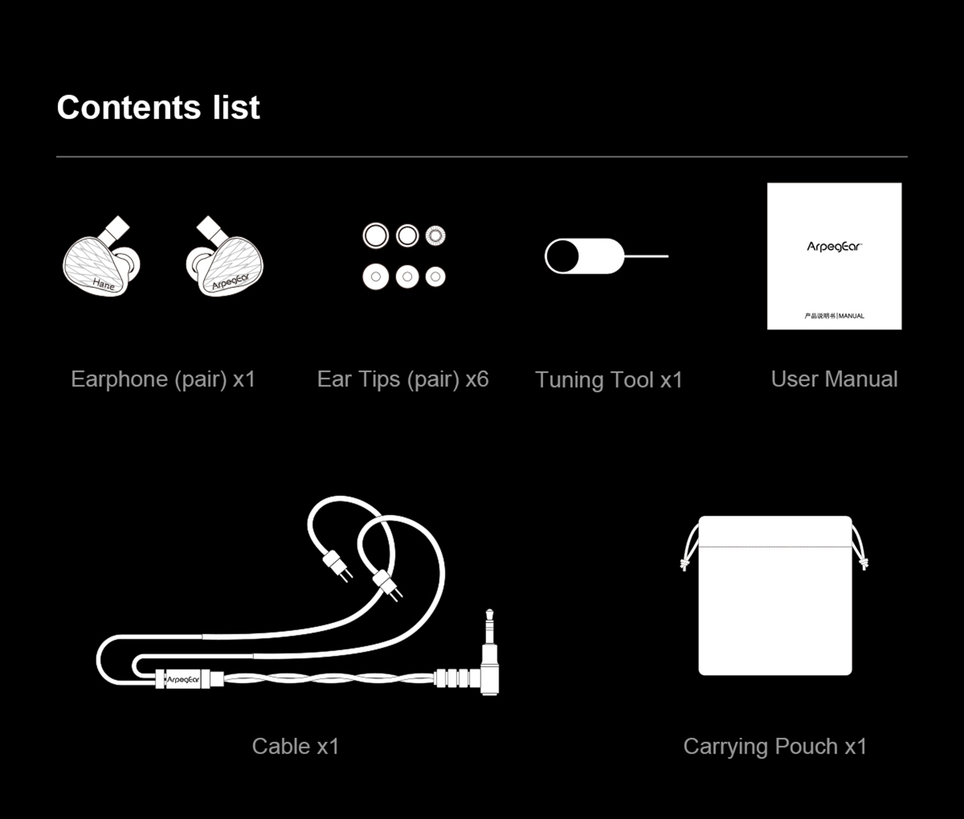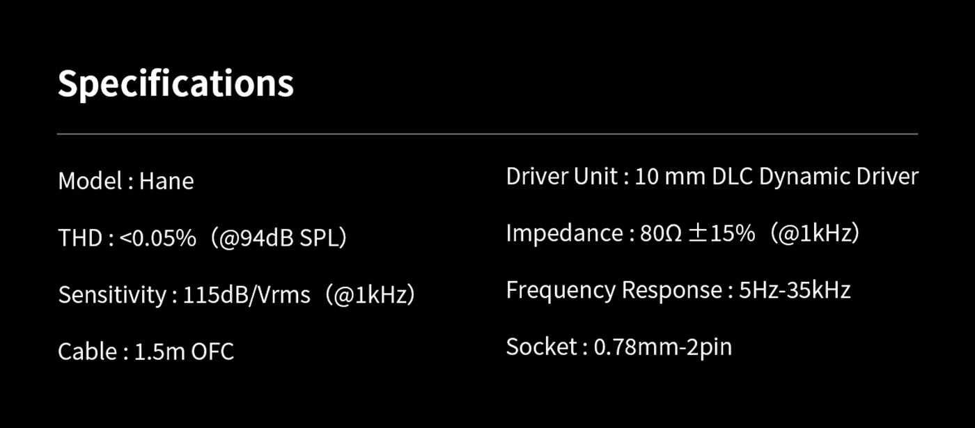 Topping a Hane fülmonitorjával tiszteleg a művészetek előtt és emellett garantálja, hogy minden zenehallgató megtalálja a számára legmegfelelőbb hangolást. A csomag tartalmaz egy 1.5m hosszú 0.78mm 2-Pin és 3.5mm csatlakozójú kábelt, hangoló eszközt, hordozó tasakot, valamint 6 pár fülillesztéket.