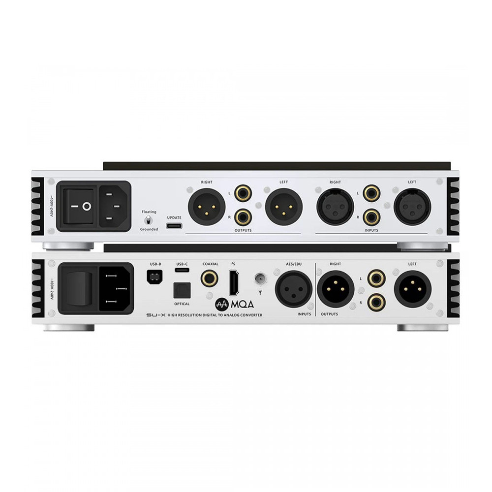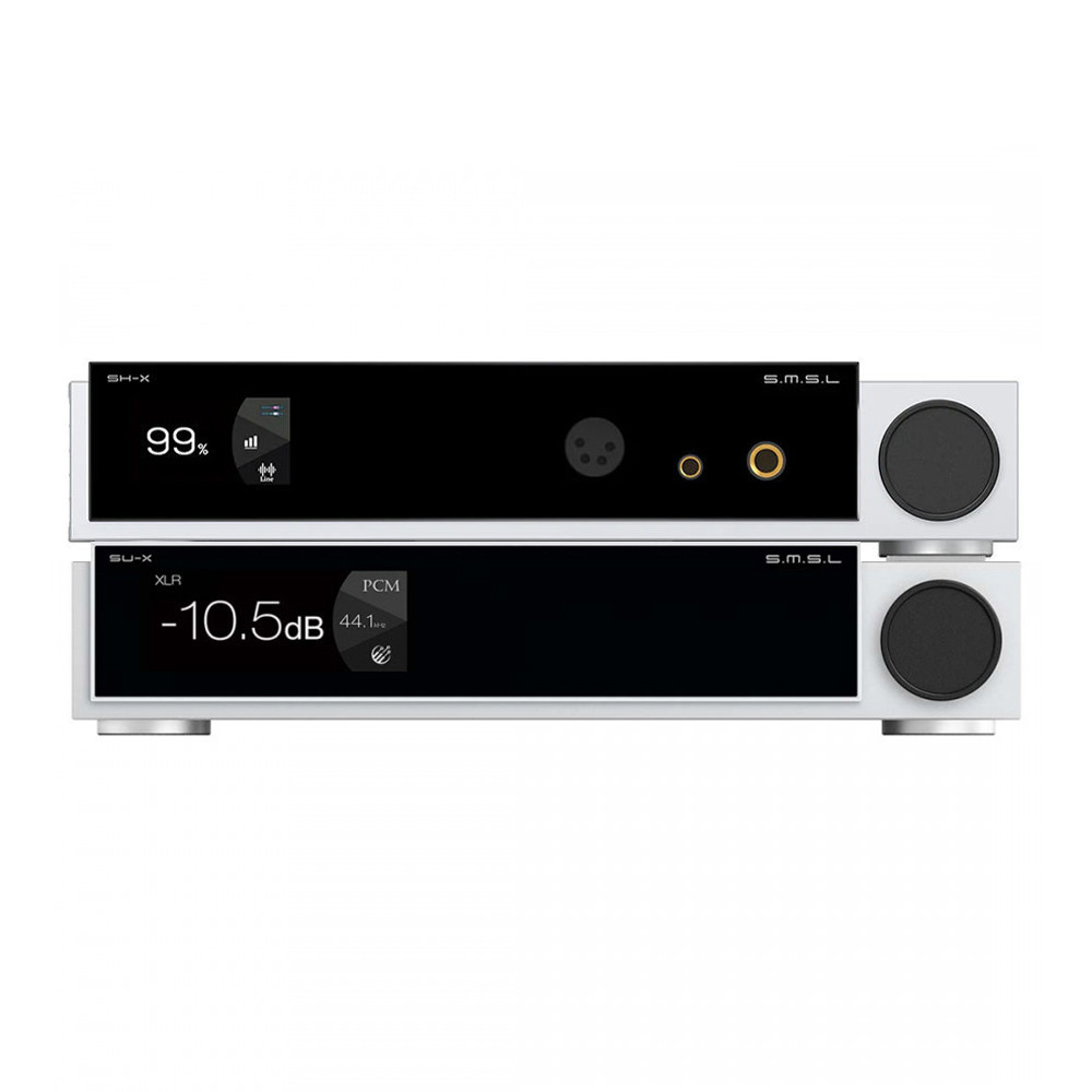 Az SMSL SU-X egy korszerű asztali DAC (digitális-analóg konverter) 2x ESS ES9039MSPRO DAC chippel, egy XMOS XU316 USB interfésszel, nagy felbontású PCM 32bit 768kHz-es mintavételi sebességgel és DSD512-ig terjedő natív DSD támogatással. Az SU-X MQA dekódolásra és MQA-CD streamekre is alkalmas. A Qualcomm Bluetooth 5.1-es chipje aptX, aptX HD és LDAC nagy felbontású dekódolást kínál. A hátlap teljes körű csatlakoztathatóságot kínál, számos digitális bemenettel, köztük egy HDMI-csatlakozón keresztül elérhető I2S-bemenettel, valamint két sztereó RCA- és XLR analóg kimenettel. Az SMSL márkára jellemző innovatív dizájn ismét egy elegáns, kiváló építési minőségű, nagyméretű színes IPS kijelzővel és edzett üveggel ellátott eszközzel tereli magára minden igényes zenehallgató figyelmét. A csomag egy RC-8A távvezérlőt is tartalmaz.