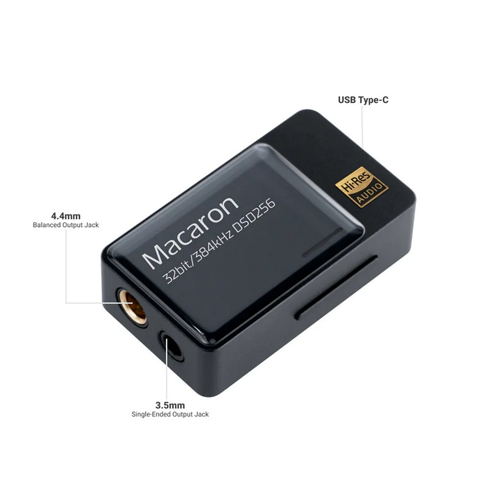 A kompakt házon lévő billenő gomb 100 lépcsős hangerőállítást tesz elérhetővé. A mindössze 80mA fogyasztásának hála gyengébb kimeneti teljesítményű okostelefonokkal is kompatibilis. A 3.5mm egyvégű és 4.4mm szimmetrikus kimeneteivel a világ fülhallgatóinak nagy részével használható. Az iBasso UAC alkalmazással finomhangolható a Macaron hangzása.