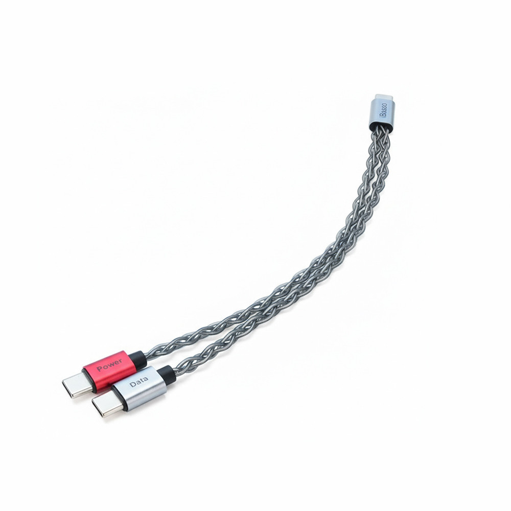Az iBasso CB19C Type‑C USB DAC tápkábel olyan felhasználóknak készült, akik szeretnék a telefonjuk és hordozható DAC‑juk közötti kapcsolatot a lehető legtisztább formában megvalósítani. A kábel két külön Type‑C ággal rendelkezik: a piros csatlakozó kizárólag a külső tápellátást biztosítja, míg a szürke ág csak az adatátvitelért felel. Ennek a teljes szétválasztásnak köszönhetően a telefonból érkező elektromos zajok nem juthatnak át a DAC felé, így stabilabb, tisztább és részletezőbb hangzás érhető el.