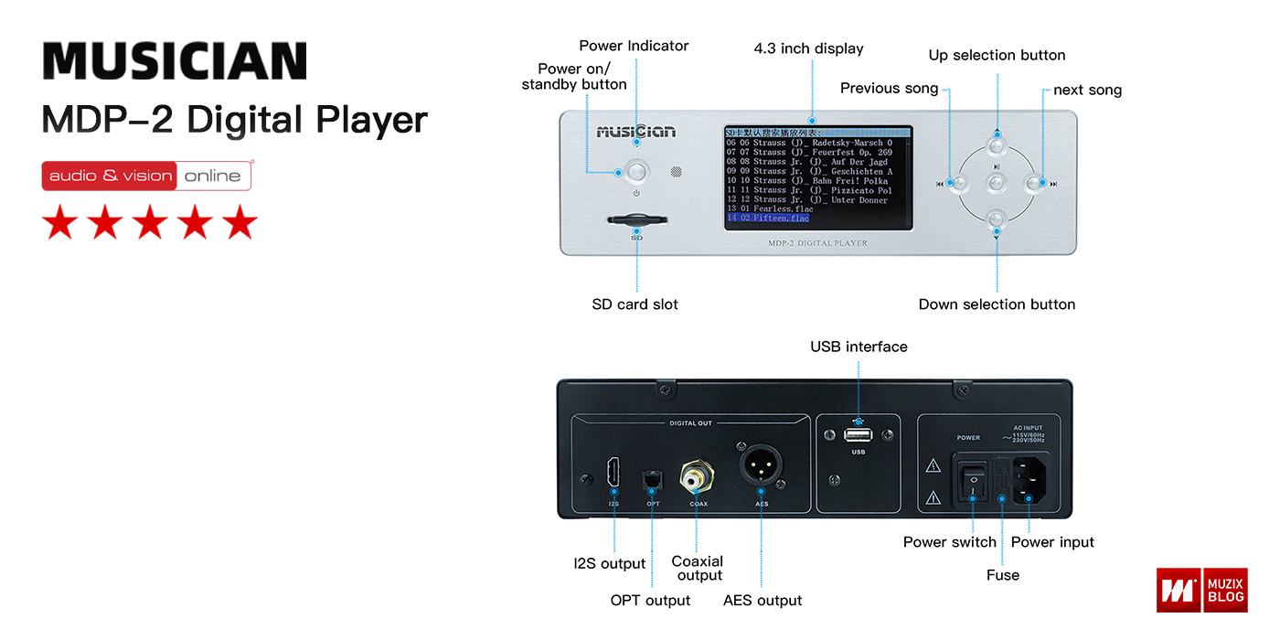 A Musician Audio a Leo-val egy olyan csúcskategóriás digitális interfészt kínál, ami egy igazi technológiai koncentrátum. Célja az audiojelek rendkívül tiszta és stabil átvitele. Csatlakozók bőséges választékával rendelkezik, amely a legtöbb igényt kielégíti, tökéletesen alkalmazkodik az audiorendszerek túlnyomó többségéhez. Ezenkívül támogatja a nagy felbontású audio stream-eket, a lehető legpontosabb és legátláthatóbb hangvisszaadás érdekében. Meanwell kapcsolóüzemű tápegység, STM32F446 USB interfész, OCXO kristályoszcillátor és 24bit 768kHz DSD512 támogatás jellemzi.