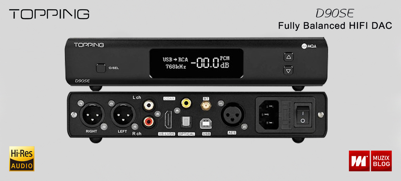A Topping D90SE egy csúcskategóriás DAC, amely precíz és gondos tervezésének köszönhetően nagy teljesítményt nyújt. ESS ES9038Pro konverziós chipet, XMOS interfészt és Altera Max II CPLD-t tartalmaz. A D90SE szintén sokoldalú, teljes csatlakozási lehetőséggel és integrált Bluetooth-vevővel rendelkezik.
