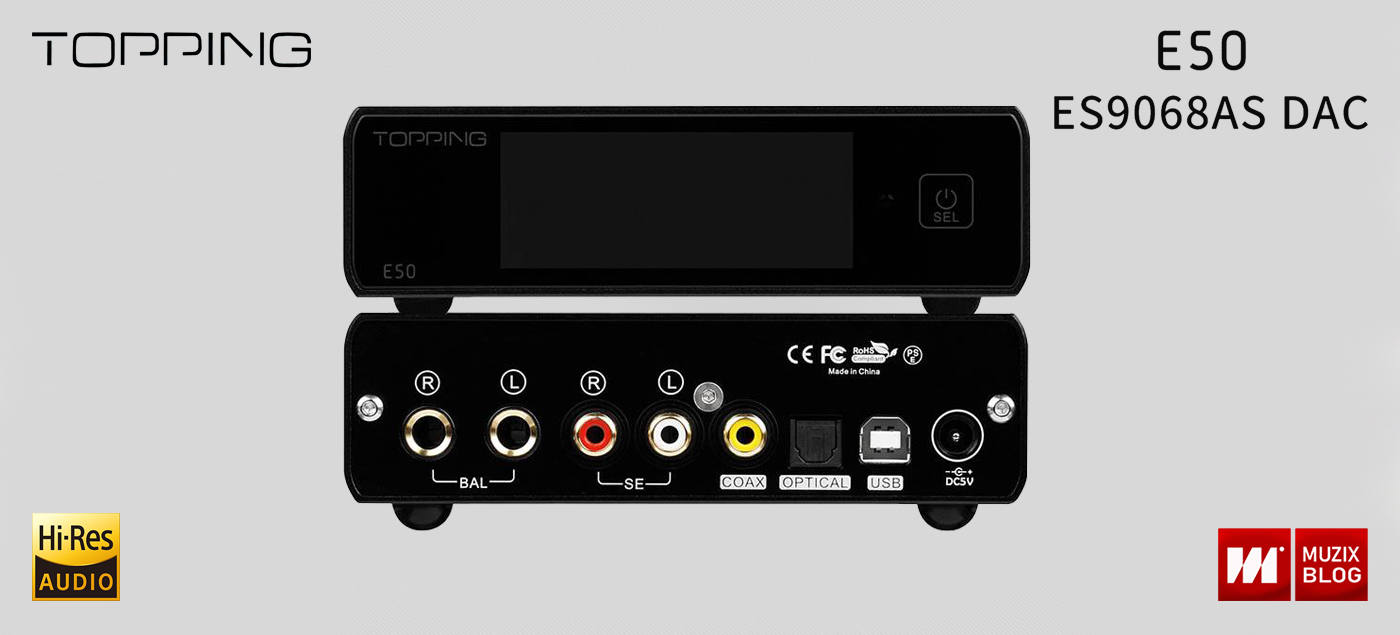 A Topping az E50-el egy kompakt és nagyon erős DAC-ot kínál, amely az audiofilek által széles körben elismert, bevált audiokomponenseket használ. Ez egy ESS ES9068AS digitális/analóg konverziós chipen, valamint egy XMOS XU216 USB interfészen alapul, amely lehetővé teszi nagy felbontású fájlok olvasását, de MQA fájlok dekódolását is.